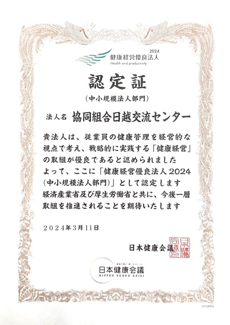 2024年3月11日に健康経営優良法人2024年の発表があり、うちの組合も中小規模法人部門で無事認定を受けることができました。