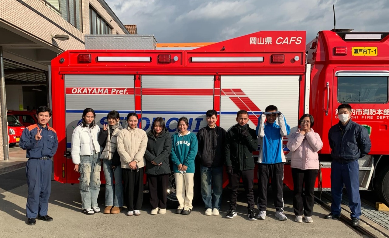 午後の集合研修では瀬戸内消防署で、消防署見学をしてきました。