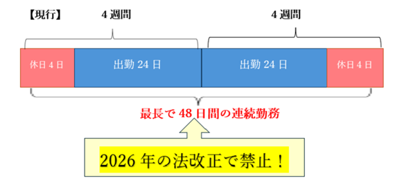 「2026年 労働法改正による14日以上の連続勤務禁止」
