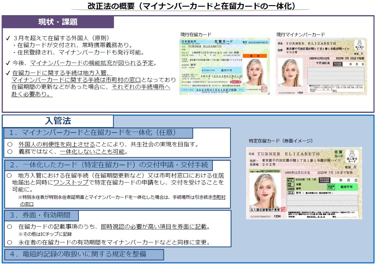 今後、マイナンバーカードと在留カードが一体化する予定があります。すでに法改正は2024年6月に行われており、2年以内に施行予定です。