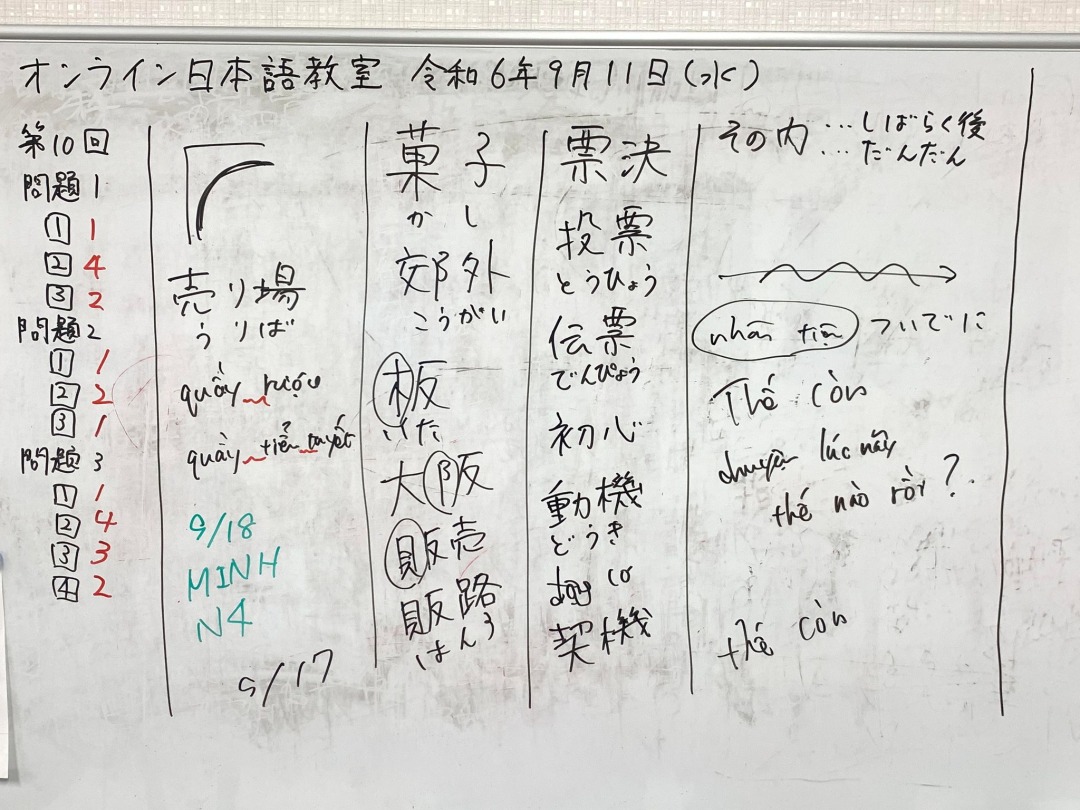 次回はMINH先生のN4の授業の予定です。