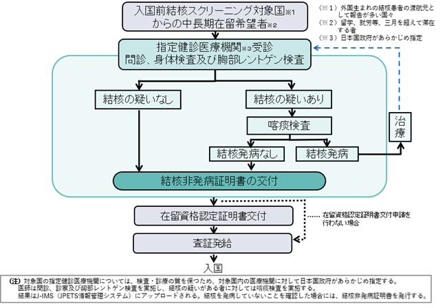 具体的には、日本入国後に結核と診断されることの多い外国人の出身国は、出国前の在留資格認定証明書交付申請で結核の非発病証明書の提出が必要になります。