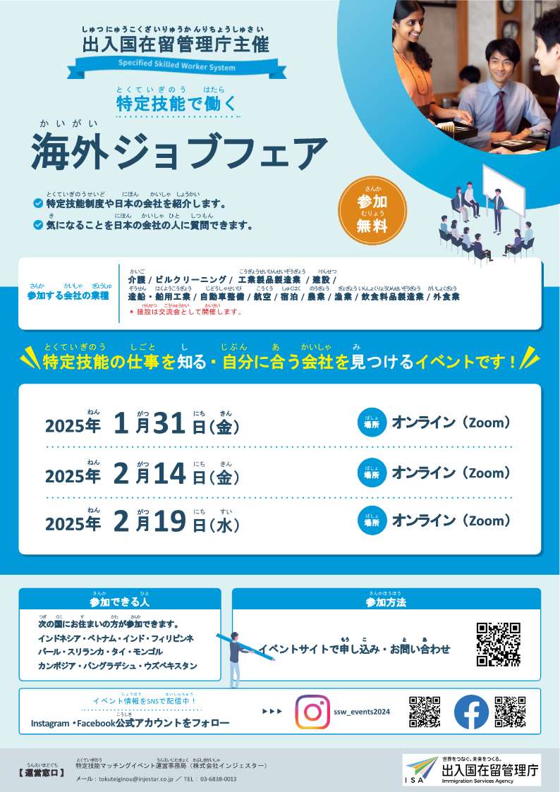 出入国管理庁主催で、オンライン(Zoom)を使ったジョブフェアのイベントがあります。