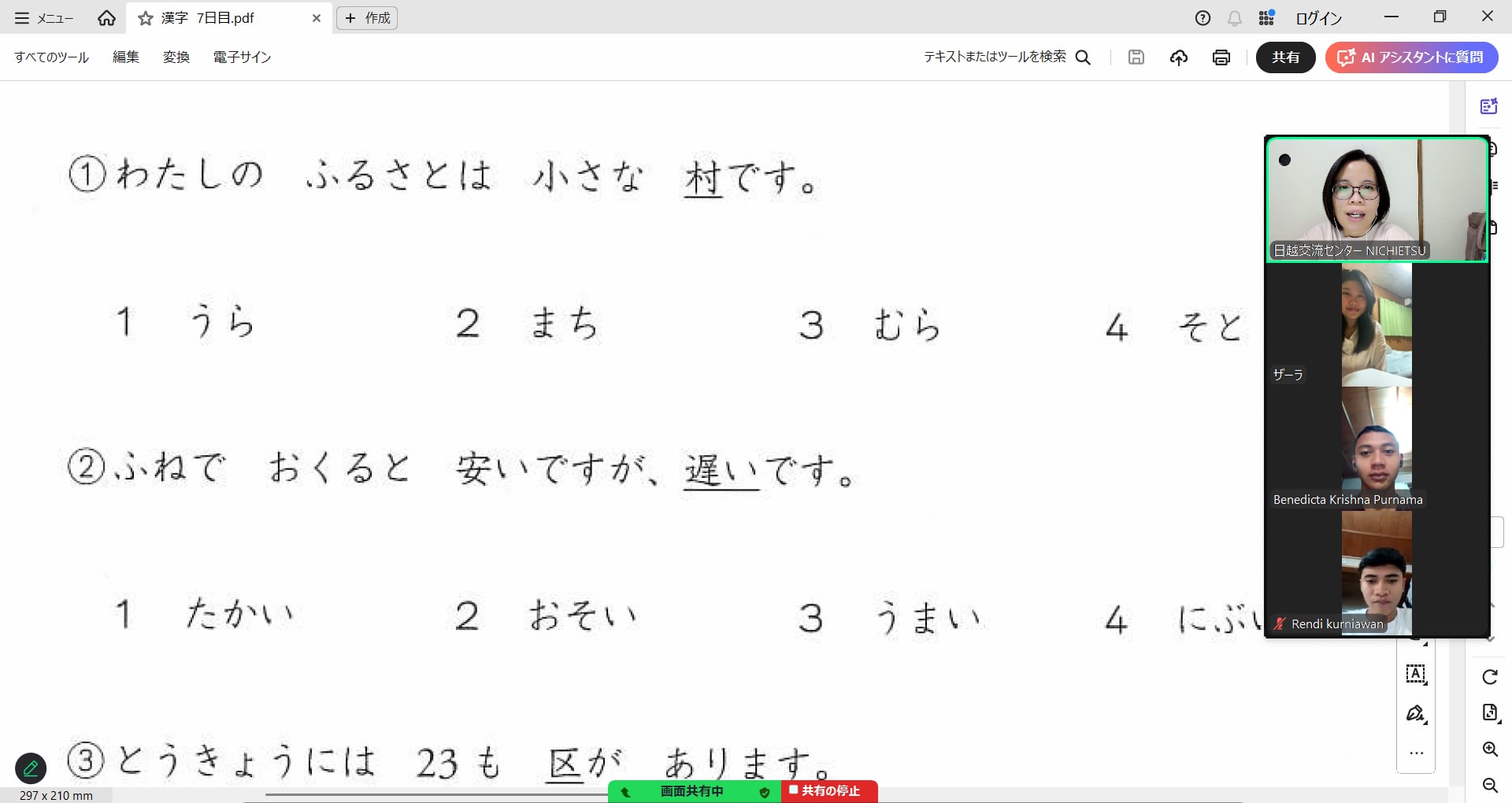 日越交流センターでは,毎週火曜日と毎月第1・第3木曜日の夜にZoomを使ったオンライン日本語教室を開催しています。